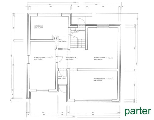 Na parterze znajdują się, 3 duże pokoje, przedpokój i WC. Jest także kotłownia gdzie umiejscowiony jest nowy piec dwu-funkcyjny oraz bojler o poj. 300 L.