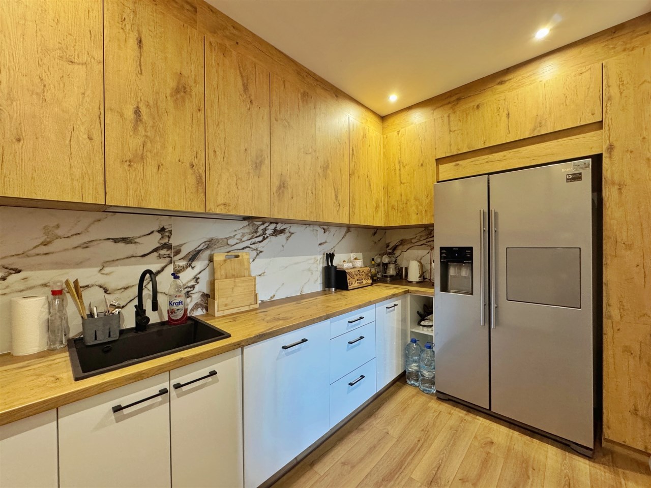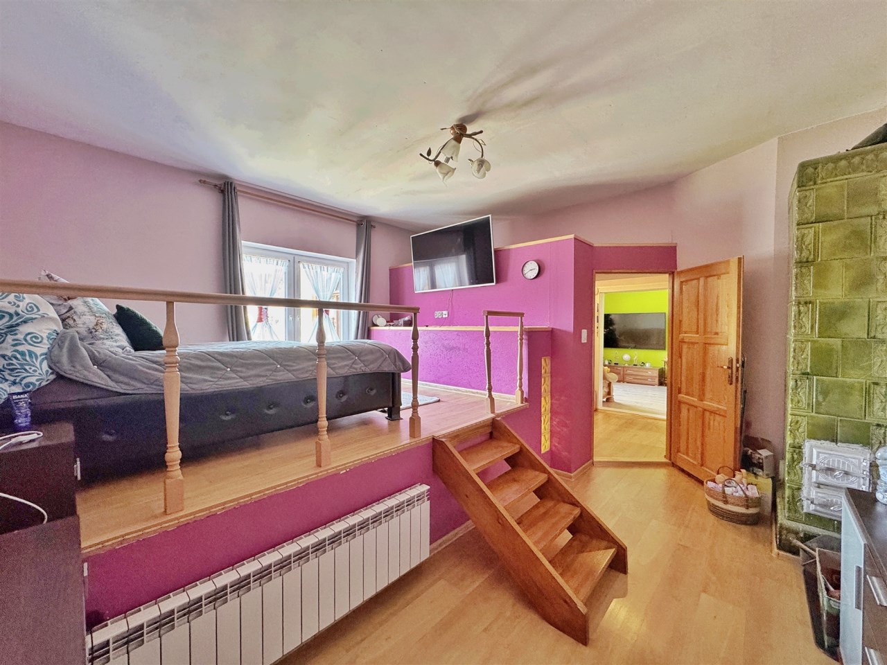 Dzięki takiej aranżacji dom jest niezwykle funkcjonalny i oferuje komfortowe warunki dla dużej rodziny, a także możliwość wydzielenia przestrzeni dla gości. Budynek ogrzewany jest z pieca na drewno jak również piecem elektrycznym, fotowoltaika 6kW na dachu, co zapewnia elastyczność i niższe koszty eksploatacji.