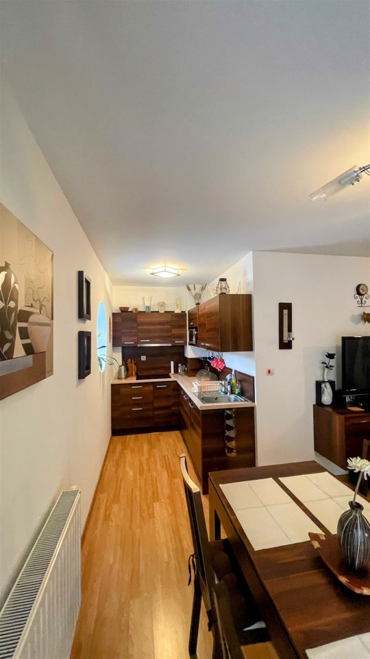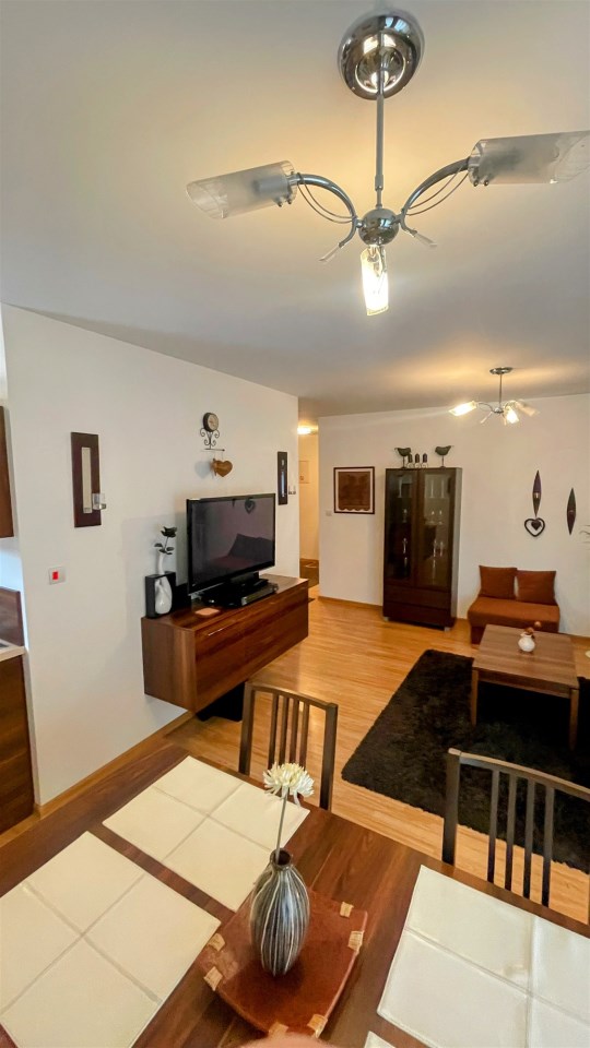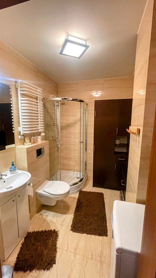 Apartament jest w pełni wyposażony i przygotowany dla Gości lub nowych Właścicieli, którzy chcą spędzić w nim czas w komfortowych warunkach. Kuchnia jest wyposażona w niezbędne urządzenia i sprzęty, co umożliwia samodzielne przygotowywanie posiłków. W łazience znajduje się prysznic oraz niezbędne akcesoria toaletowe. Wymieniony został piec na nowy.