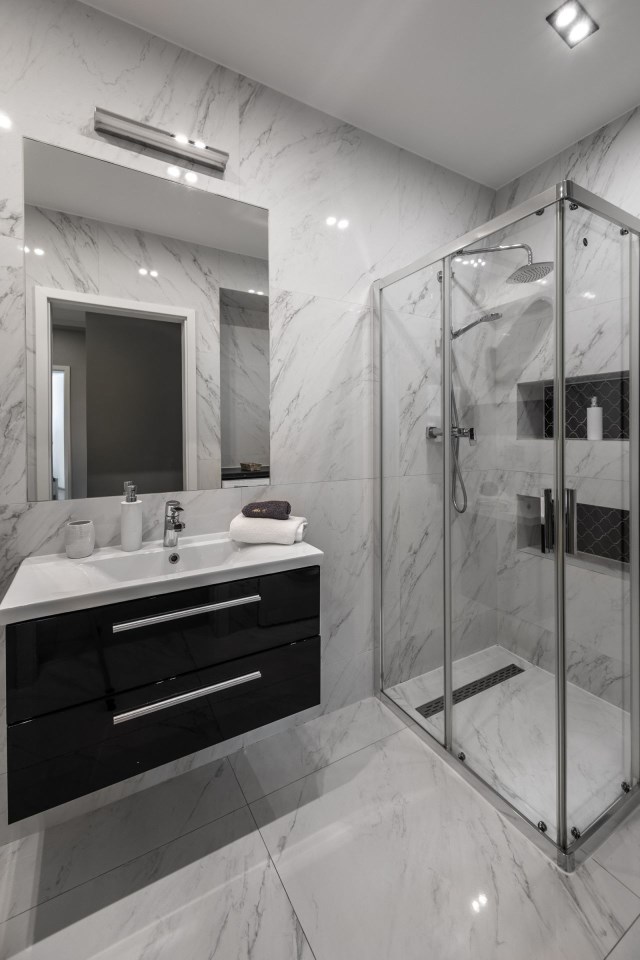 W apartamencie jest duży balkon z widokiem na miasto oraz okoliczne góry.