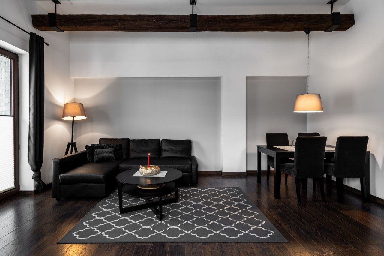 Składa się z sypialni, salonu, aneksu kuchennego oraz łazienki z kabiną prysznicową i pralką. Aneks kuchenny jest wyposażony w płytę indukcyjną, kuchenkę mikrofalową, lodówkę, czajnik elektryczny, zastawę stołowa, garnki i przybory kuchenne.