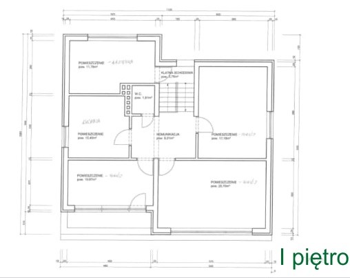 Na pierwszym piętrze, 3 duże pokoje, kuchnia, łazienka oraz osobne WC.