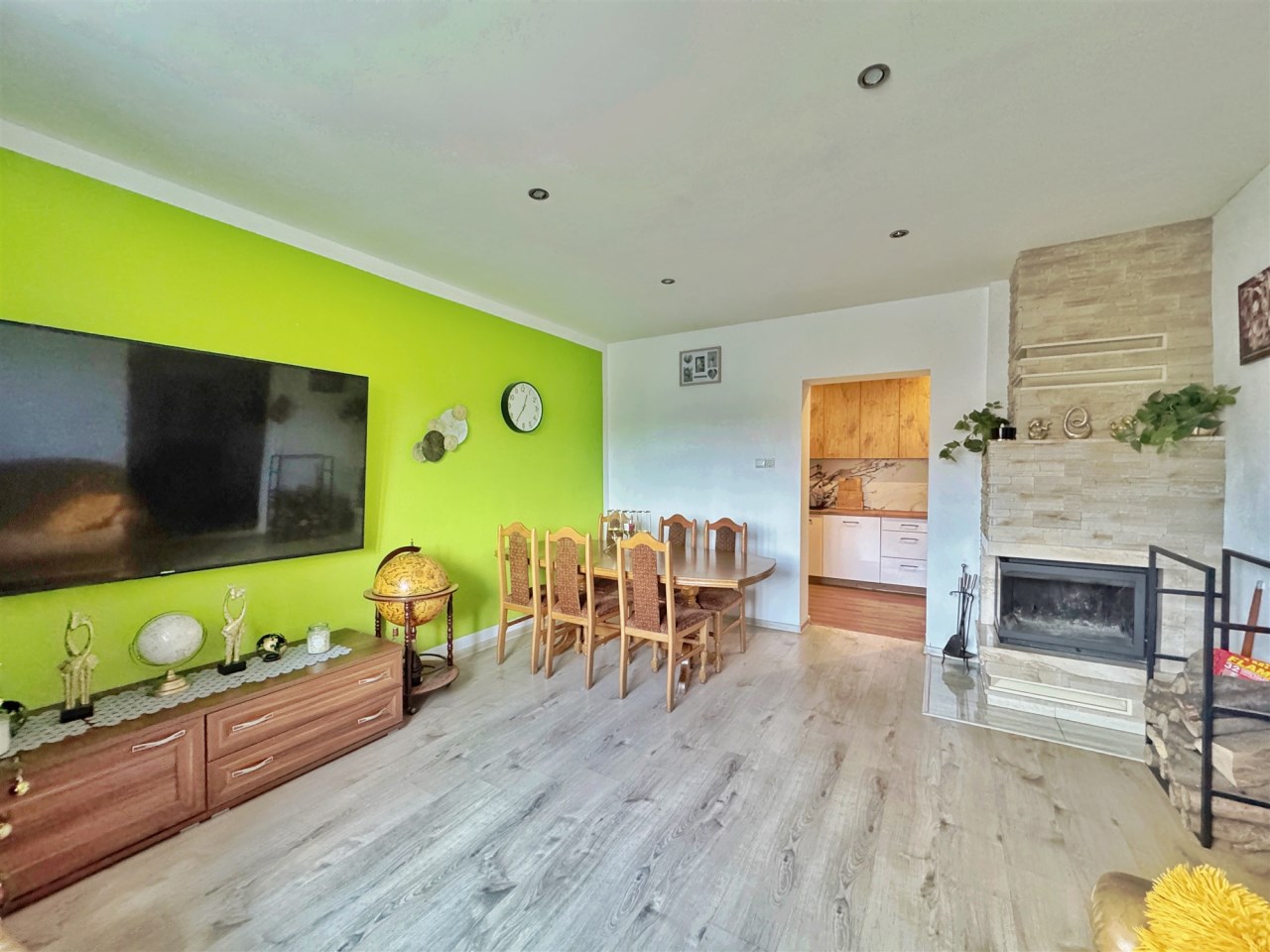 Dzięki takiej aranżacji dom jest niezwykle funkcjonalny i oferuje komfortowe warunki dla dużej rodziny, a także możliwość wydzielenia przestrzeni dla gości. Budynek ogrzewany jest z pieca na drewno jak również piecem elektrycznym, fotowoltaika 6kW na dachu, co zapewnia elastyczność i niższe koszty eksploatacji.