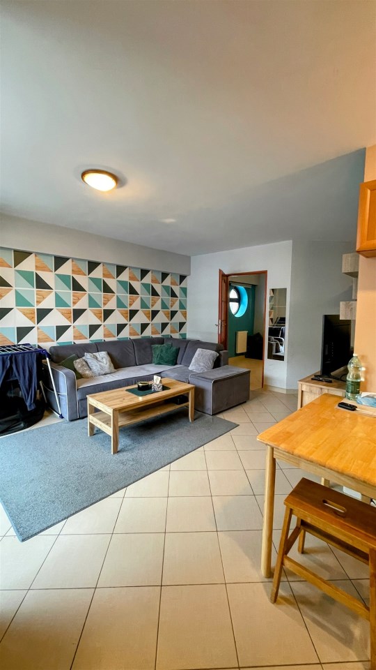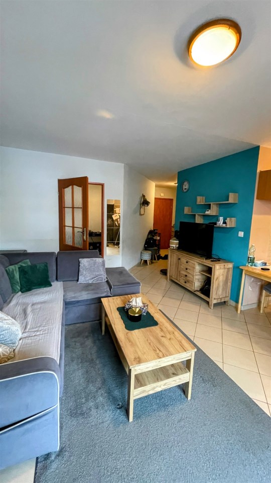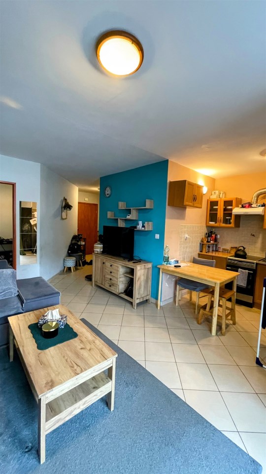 Składa się z dużego salonu z kuchnią, wydzielonej sypialni z oknem oraz łazienki. Do mieszkania przynależy jedna z niewielu komórek lokatorskich.