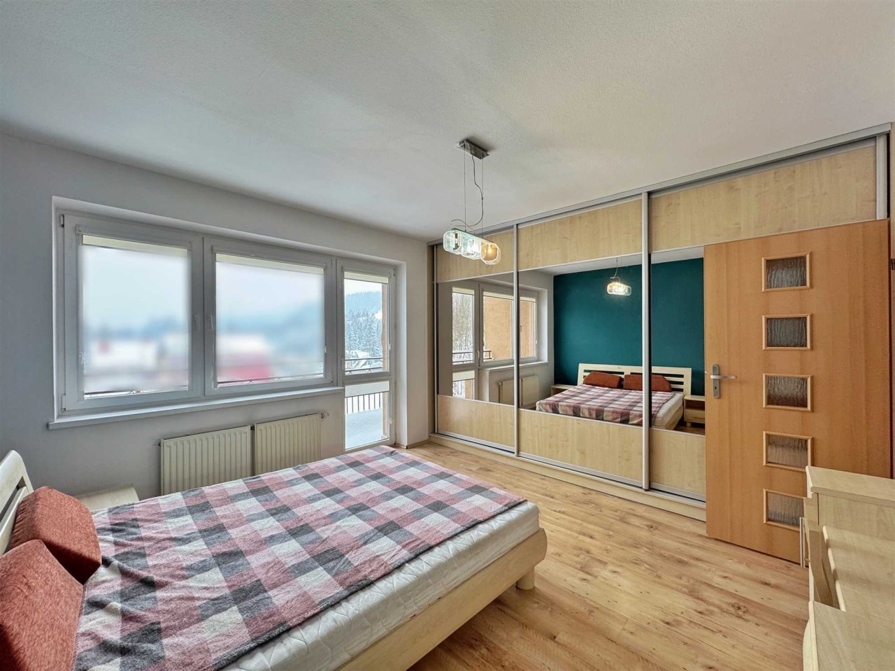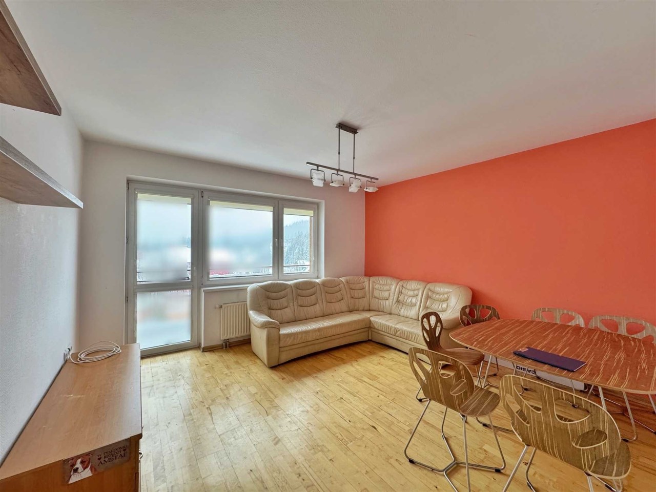 Salon sporej wielkości z wyjściem na balkon na podłodze deska Barlinecka natomiast w pokojach wysokiej klasy panele.